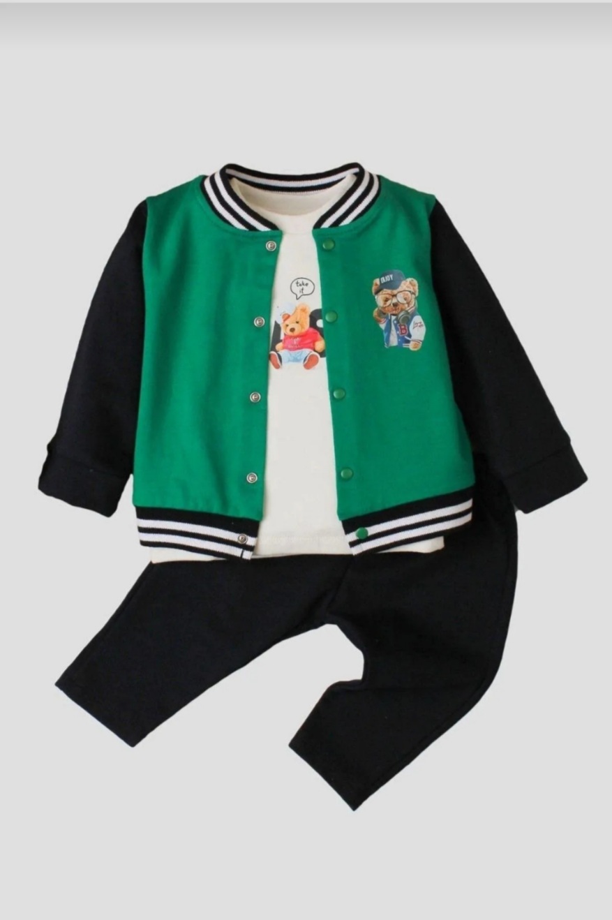 ست سه تکه بلوز شلوار و سویشرت بیسبالی پسرانه رنگ سبز
