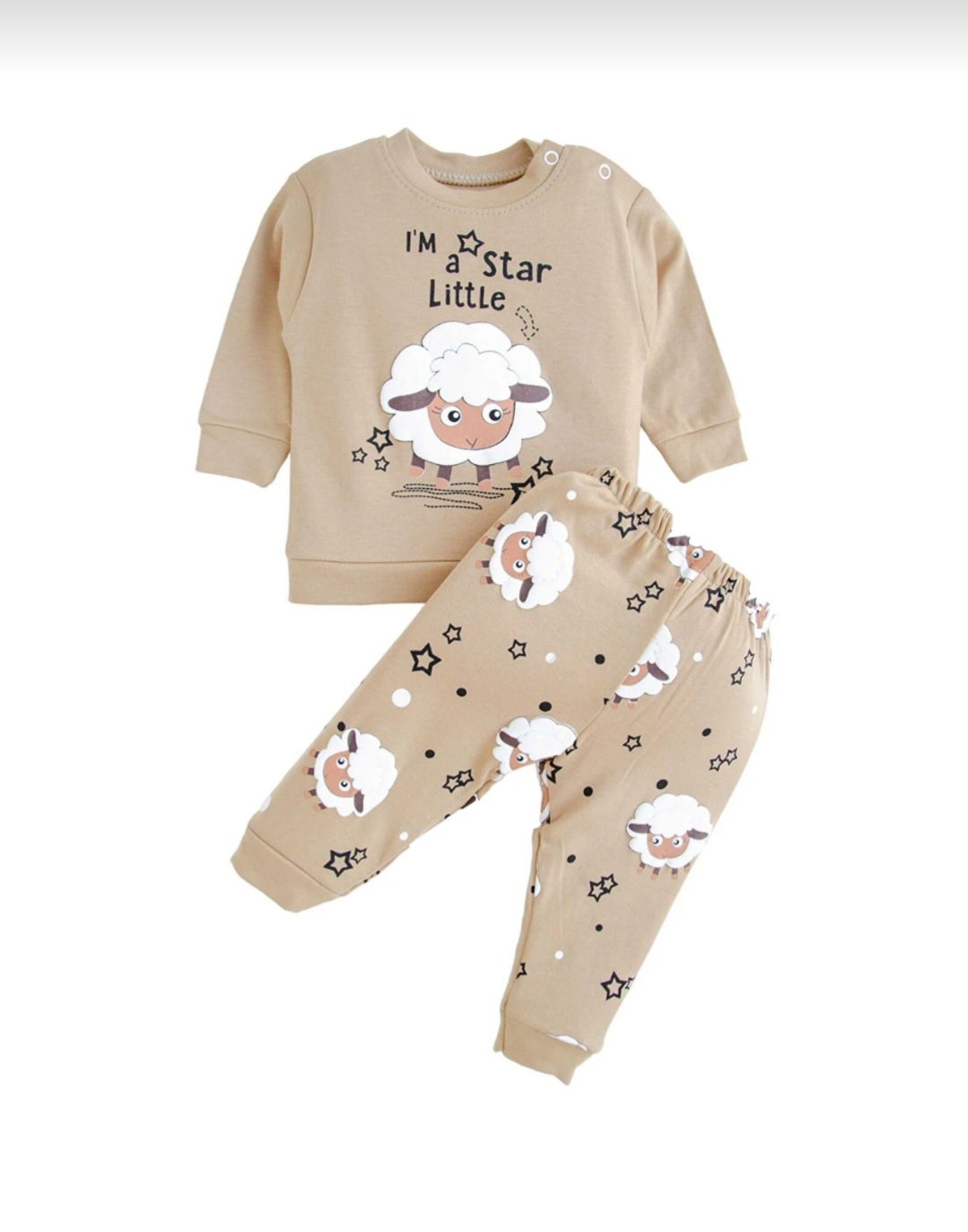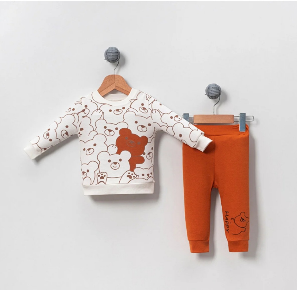 ست بلوز و شلوار قهوای کرم با طرح خرس پو