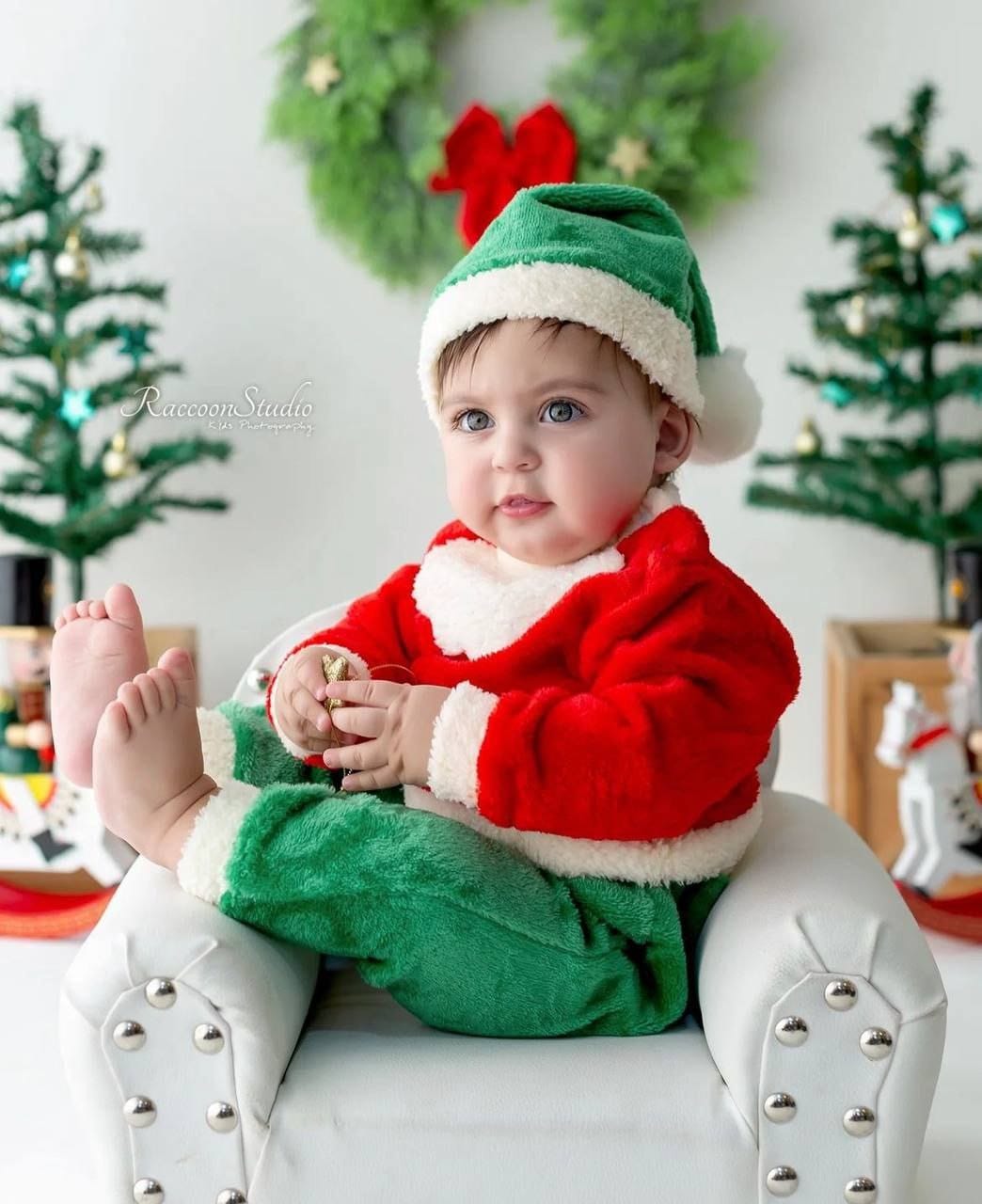ست یلدایی نوزاد ست سه تکه بلوز شلوار و کلاه یلدایی و کریسمس
