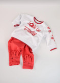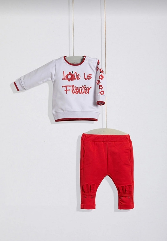 ست بلوز و شلوار دخترانه رنگ سفید قرمز با طرح گل