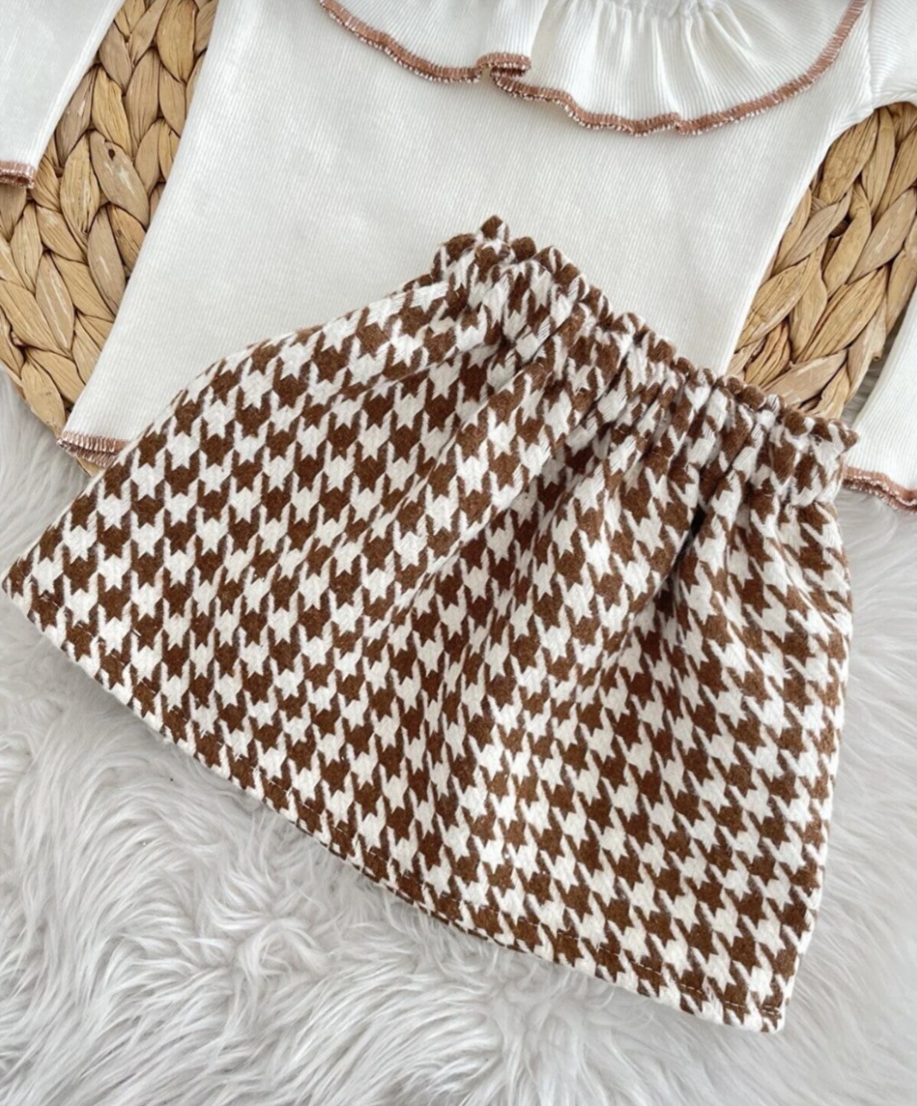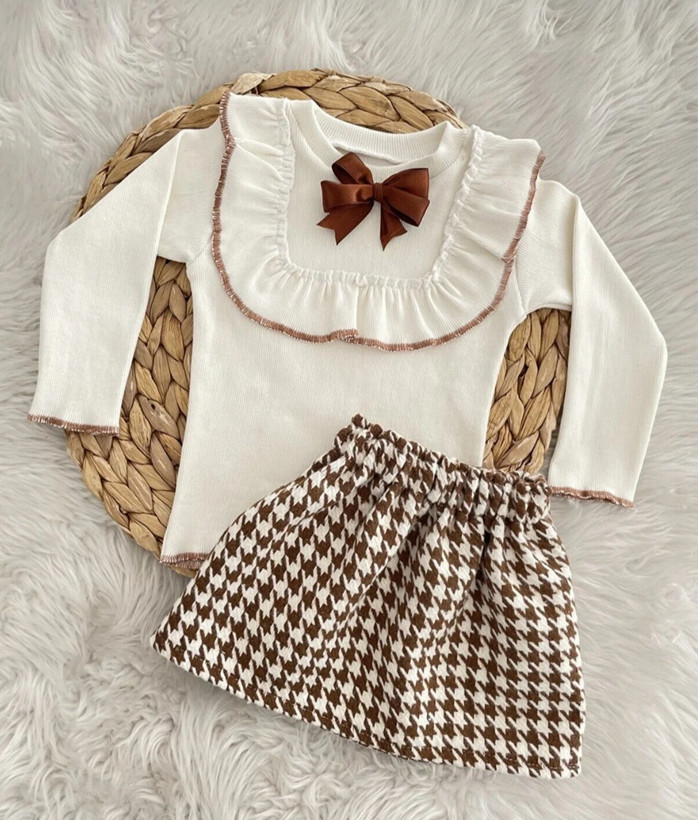 بلوز دامن دخترانه نوزادی رنگ کرم قهوای